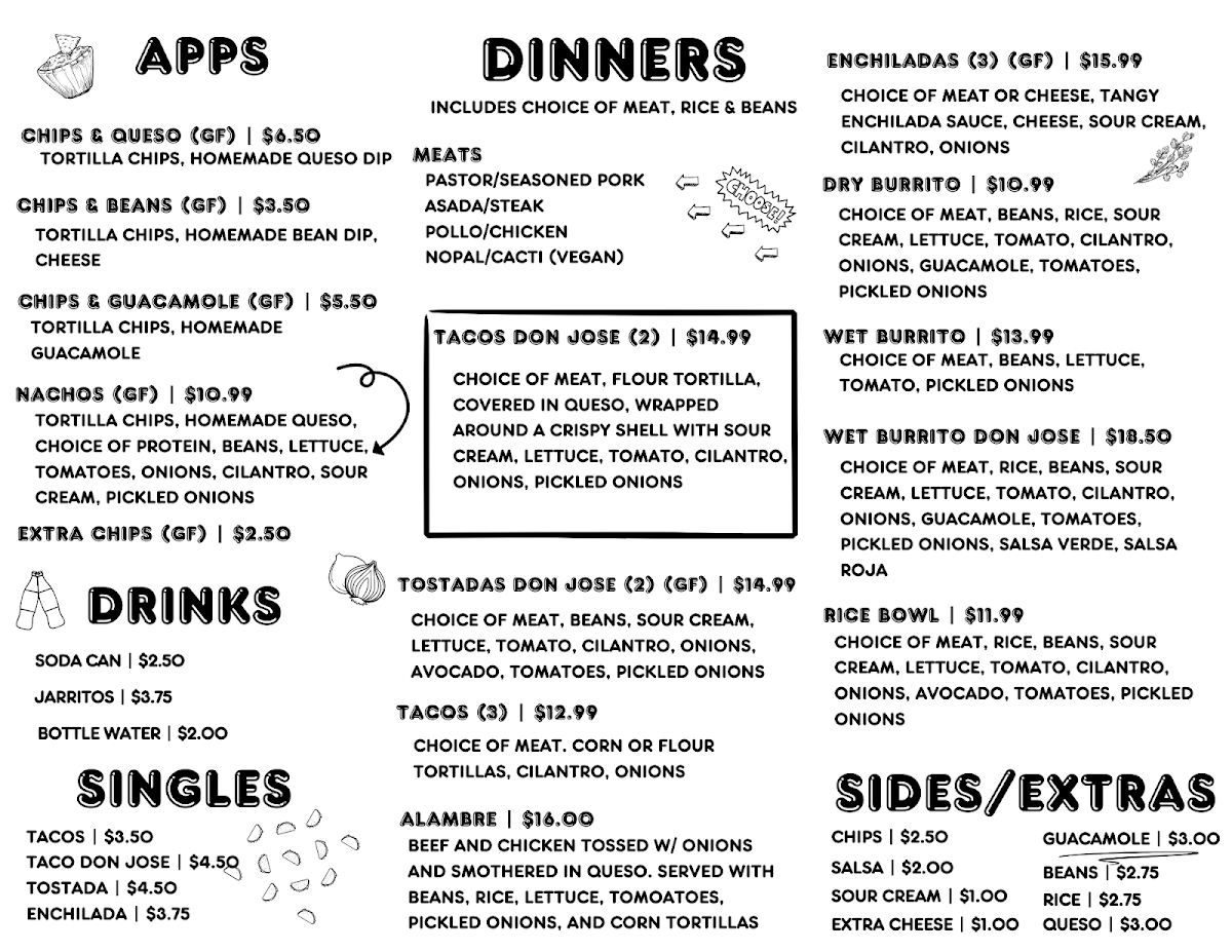 Welcome to Tacos Don Jose, a hidden gem located at 430 68th St SW, Grand Rapids, MI. This vibrant eatery specializes in authentic Mexican cuisine that will tantalize your taste buds and leave you craving more. The menu boasts a variety of delectable options, from flavorful Asada/steak and Pastor/seasoned pork tacos to satisfying vegan choices like Nopal/cacti.