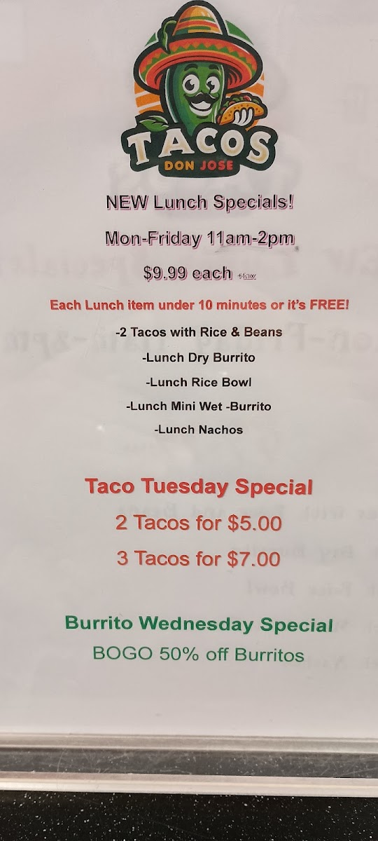 With rave reviews highlighting the food’s authenticity and the staff's friendliness, Tacos Don Jose is a must-visit for any taco lover. Experience their Tacos Tuesday for a flavorful treat!